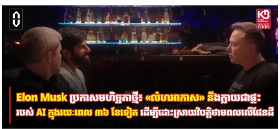 | Elon Musk ប្រកាសមហិច្ឆតាថ្មី៖ «លំហអាកាស» នឹងក្លាយជាផ្ទះរបស់ AI ក្នុងរយៈពេល ៣៦ ខែទៀត ដើម្បីដោះស្រាយវិបត្តិថាមពលលើផែនដី |