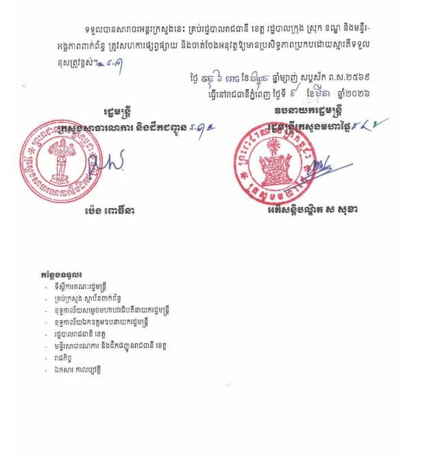 ខាងក្រោមនេះជាសារាចររួមរបស់ក្រសួងមហាផ្ទៃ និងក្រសួងសាធារណការ និងដឹកជញ្ជូន៖