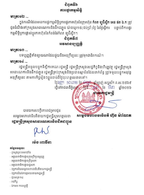រាជធានីភ្នំពេញ៖ សម្តេចបវរធិបតី ហ៊ុន ម៉ាណែត នាយករដ្ឋមន្ត្រីនៃកម្ពុជា បានចេញអនុក្រឹត្យសម្រេចឱ្យបង្កើតកំពង់ផែកំពត ឡូជីស្ទីក ដែលមានទំហំរហូតដល់ជាង ៧០០ហិកតា។