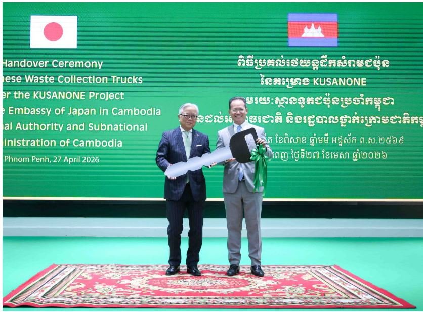 រាជធានីភ្នំពេញ៖ក្នុងពិធីប្រគល់ និងទទួលជំនួយរថយន្តដឹកសំរាមរបស់ប្រទេសជប៉ុន បានរៀបចំឡើងនៅទីស្តីការក្រសួងបរិស្ថាន នាថ្ងៃទី២៧ ខែមេសា ឆ្នាំ ២០២៦ លោកបណ្ឌិត អ៊ាង សុផល្លែត រដ្ឋមន្ត្រីក្រសួងបរិស្ថាន បានថ្លែអំណរគុណដល់រាជរដ្ឋាភិបាលជប៉ុន ចំពោះការគាំទ្រជាបន្តបន្ទាប់ និងបានចាត់ទុកថា ជំនួយនេះ ចូលរួមចំណែកដ៏មានអត្ថន័យក្នុងការពង្រឹងសមត្ថភា ពគ្រប់គ្រងកាកសំណល់នៅថ្នាក់ក្រោមជាតិ។ រថយន្តដឹកសំរាមត្រូវបានបែងចែកបន្តបន្ទាប់ទៅអាជ្ញាធរខេត្តភ្លាមៗ ដែលបានជួយជំរុញឱ្យរដ្ឋបាលមូលដ្ឋានបង្កើនសេវាប្រមូល និងទុកដាក់សំរាមក្នុងដែនសមត្ថកិច្ចរបស់ខ្លួនបានល្អប្រសើរ។