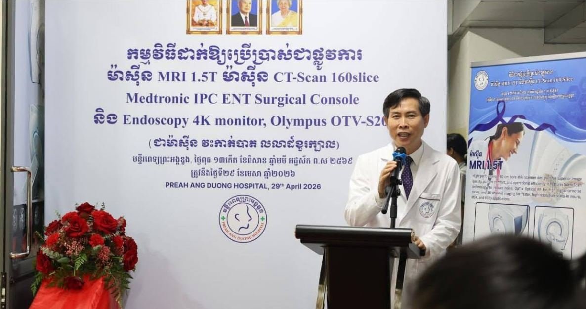 មន្ទីរពេទ្យព្រះអង្គឌួង បានដាក់ឱ្យប្រើប្រាស់ជាផ្លូវការម៉ាស៊ីនវះកាត់បាត លលាដ៍ខួរក្បាល សម្រាប់ព្យាបាលអ្នកជំងឺធ្ងន់ធ្ងរ នៅថ្ងៃទី២៩ ខែមេសា ឆ្នាំ២០២៦ ក្រោមអធិបតីភាពលោកសាស្ត្រាចារ្យរង លូ លីឃាង ប្រធានមន្ទីរពេទ្យព្រះអង្គឌួង និងមានការចូលរួមពីវេជ្ជបណ្ឌិតជំនាញឯកទេសជាច្រើនរូបផ្សេងទៀត។