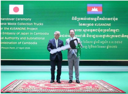 រាជធានីភ្នំពេញ៖ក្នុងពិធីប្រគល់ និងទទួលជំនួយរថយន្តដឹកសំរាមរបស់ប្រទេសជប៉ុន បានរៀបចំឡើងនៅទីស្តីការក្រសួងបរិស្ថាន នាថ្ងៃទី២៧ ខែមេសា ឆ្នាំ ២០២៦ លោកបណ្ឌិត អ៊ាង សុផល្លែត រដ្ឋមន្ត្រីក្រសួងបរិស្ថាន បានថ្លែអំណរគុណដល់រាជរដ្ឋាភិបាលជប៉ុន ចំពោះការគាំទ្រជាបន្តបន្ទាប់ និងបានចាត់ទុកថា ជំនួយនេះ