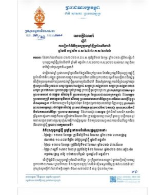 រាជធានីភ្នំពេញ៖ក្រសួងធម្មការនិងសាសនា បានចេញសេចក្តីណែនាំ ស្តីពីការរៀបចំពិធីបុណ្យចូលឆ្នាំថ្មីប្រពៃណីជាតិ ឆ្នាំមមី អដ្ឋស័ក