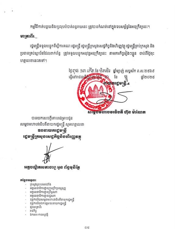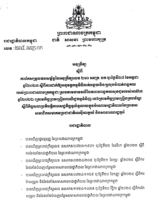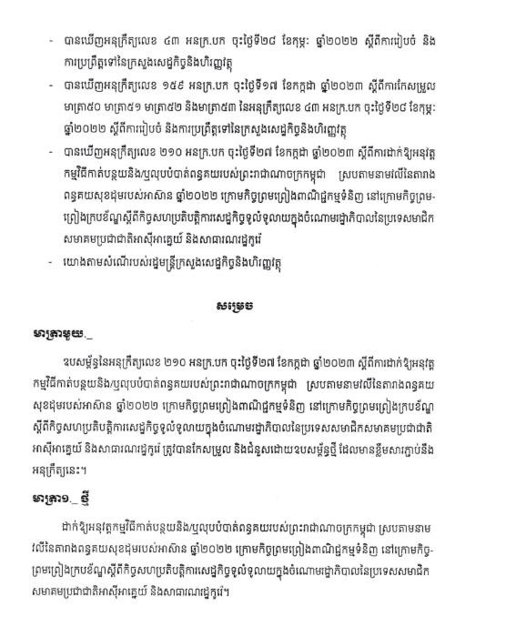 រាជធានីភ្នំពេញ៖អគ្គនាយកដ្ឋានគយ និងរដ្ឋាករកម្ពុជា បានចេញសេចក្ដីជូនដំណឹង ស្តីពី ការដាក់ឱ្យអនុវត្តអនុក្រឹត្យលេខ ២៣៥ អនក្រ.បក ចុះថ្ងៃទី៣ ខែធ្នូ ឆ្នាំ២០២៥ ស្តីពីការកែសម្រួលឧបសម្ព័ន្ធ នៃអនុក្រឹត្យលេខ ២១០ អនក្រ.បក ចុះថ្ងៃទី២៧ ខែកក្កដា ឆ្នាំ២០២៣ ស្តីពីការដាក់ឱ្យអនុវត្តកម្មវិធីកាត់បន្ថយ និង/ឬលុបបំបាត់ពន្ធគយ របស់ព្រះរាជាណាចក្រកម្ពុជា ស្របតាមនាមវលី នៃតារាងពន្ធគយសុខដុមរបស់អាស៊ានឆ្នាំ២០២២ ក្រោមកិច្ចព្រមព្រៀងពាណិជ្ជកម្មទំនិញ នៅក្រោមកិច្ចព្រមព្រៀងក្របខ័ណ្ឌ ស្តីពីកិច្ចសហប្រតិបត្តិការសេដ្ឋកិច្ចទូលំទូលាយ ក្នុងចំណោមរដ្ឋាភិបាលនៃប្រទេសសមាជិកសមាគមប្រជាជាតិអាស៊ីអាគ្នេយ៍ និងសាធារណរដ្ឋកូរ៉េ៕