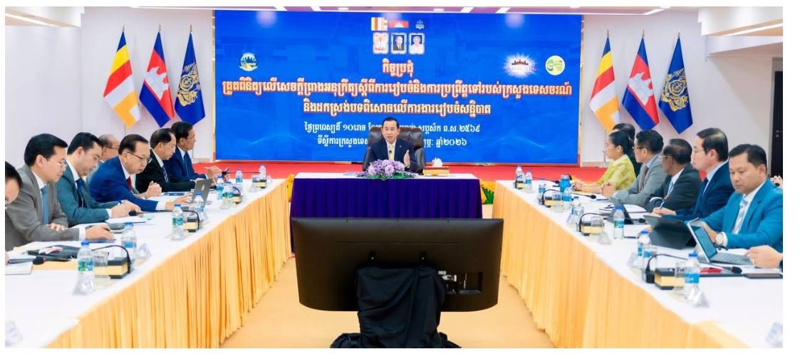 រាជធានីភ្នំពេញ៖កិច្ចប្រជុំនេះ ធ្វើឡើងក្នុងគោលបំណងពិនិត្យលើសេចក្តីព្រាងអនុក្រឹត្យស្តីពី ការរៀបចំនិងការប្រព្រឹត្តទៅរបស់ក្រសួងទេសចរណ៍ ព្រមទាំងការដកស្រង់បទពិសោធលើការងាររៀបចំសន្និបាតដែលបានរៀបចំនាពេលកន្លងមកនេះ។លោក ហួត ហាក់ រដ្ឋមន្ត្រីក្រសួងទេសចរណ៍ នៅថ្ងៃទី១២ ខែកុម្ភៈ ឆ្នាំ២០២៦ បានអញ្ជើញដឹកនាំកិច្ចប្រជុំពិនិត្យលើសេចក្តីព្រាងអនុក្រឹត្យស្តីពីការរៀបចំនិងការប្រព្រឹត្តទៅរបស់ក្រសួងទេសចរណ៍ និងដកស្រង់បទពិសោធលើការងាររៀបចំសន្និបាតបូកសរុបលទ្ធផលការងារវិស័យទេសចរណ៍ឆ្នាំ២០២៥ និងលើកទិសដៅការងារឆ្នាំ២០២៦។