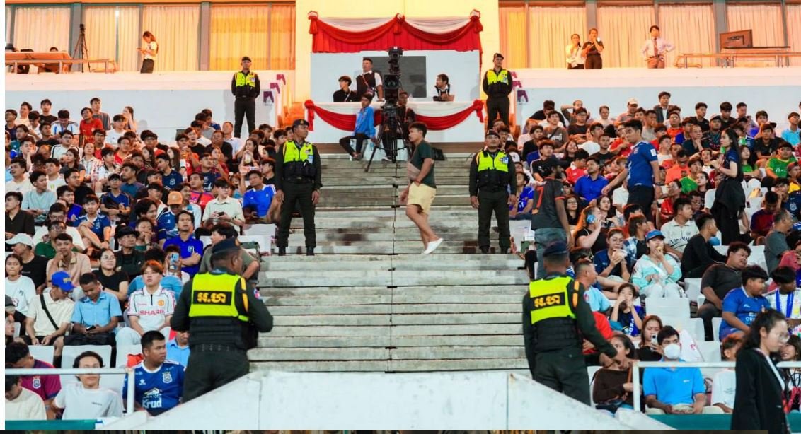 រាជធានីភ្នំពេញ៖ កម្លាំងអាវុធហត្ថរាជធានីភ្នំពេញ នាយប់ថ្ងៃទី៥ ខែមីនា ឆ្នាំ២០២៦នេះ ចូលរួមការពារសន្តិសុខ រក្សាសណ្តាប់ធ្នាប់ ក្នុងការប្រកួតបាល់ទាត់ជើងឯកក្លឹបលំដាប់ទី៣អាស៊ី (AFC Challenge League) វគ្គ១/៤ផ្ដាច់ព្រ័ត្រ៖ រវាងក្រុមភ្នំពេញក្រោន vs ព្រះខ័នរាជស្វាយរៀង នៅពហុកីឡដ្ឋានជាតិអូឡាំពិក។