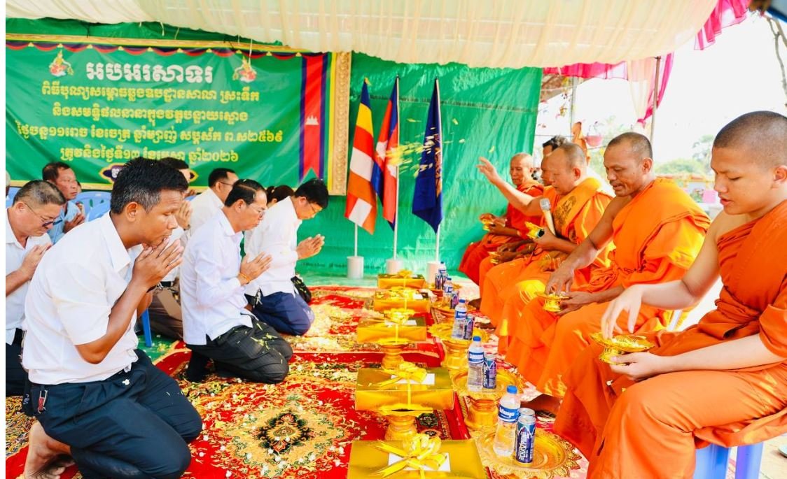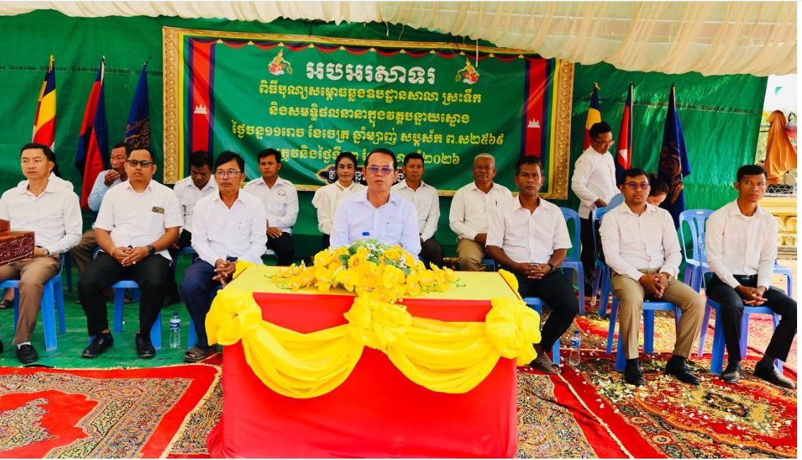ខេត្តកំពង់ធំ៖ លោក សាយ គឹមឡម បានថ្លែងក្នុងពិធីកាត់ខ្សែបូសម្ពោធដាក់ឱ្យប្រើប្រាស់នូវឧបដ្ឋានសាលា និងស្រះទឹកនៅក្នុងវត្តបន្ទាយស្ទោង ស្ថិតនៅក្នុងឃុំបន្ទាយស្ទោង ស្រុកស្ទោង ខេត្តកំពង់ធំ នាថ្ងៃទី១៣ ខែមេសា ឆ្នាំ២០២៦។លោក សាយ គឹមឡម អភិបាលស្រុកស្ទោង បានណែនាំដល់លោកអាចារ្យគណៈកម្មការ និងគ្រូចៅអធិការវត្តត្រូវធ្វើផែនការនិងប្លង់មេឱ្យបានច្បាស់លាស់ សម្រាប់អភិវឌ្ឍវត្តរបស់ខ្លួន ប្រកបដោយរចនាសម្ព័ន្ធ និងសោភ័ណភាព។