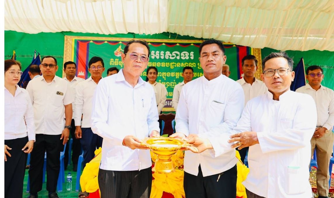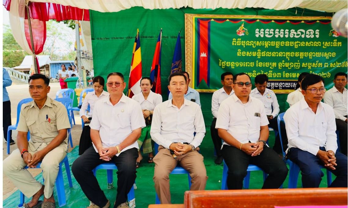 ខេត្តកំពង់ធំ៖ លោក សាយ គឹមឡម បានថ្លែងក្នុងពិធីកាត់ខ្សែបូសម្ពោធដាក់ឱ្យប្រើប្រាស់នូវឧបដ្ឋានសាលា និងស្រះទឹកនៅក្នុងវត្តបន្ទាយស្ទោង ស្ថិតនៅក្នុងឃុំបន្ទាយស្ទោង ស្រុកស្ទោង ខេត្តកំពង់ធំ នាថ្ងៃទី១៣ ខែមេសា ឆ្នាំ២០២៦។លោក សាយ គឹមឡម អភិបាលស្រុកស្ទោង បានណែនាំដល់លោកអាចារ្យគណៈកម្មការ និងគ្រូចៅអធិការ