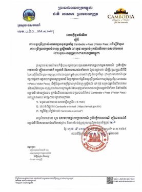 រាជធានីភ្នំពេញ៖ ក្រសួងទេសចរណ៍ នៅថ្ងៃទី១១ ខែកុម្ភៈ ឆ្នាំ២០២៦នេះ បានចេញសេចក្តីជូនដំណឹង ស្តីពីការបន្តប្រើប្រាស់សាកល្បងនូវប្រព័ន្ធ Cambodia v-Pass (Visitor Pass) ដើម្បីជំនួសការប្រើប្រាស់ ត្រាជំនាញ ឬស្ទីកឃ័រ QR កូដ សម្រាប់អ្នកដំណើរបរទេសទាំងអស់ដែលចូល-ចេញកម្ពុជា ដែលអនុវត្តនៅអាកាសយានដ្ឋានអន្តរជាតិទាំង៣ និងកំពង់ផ